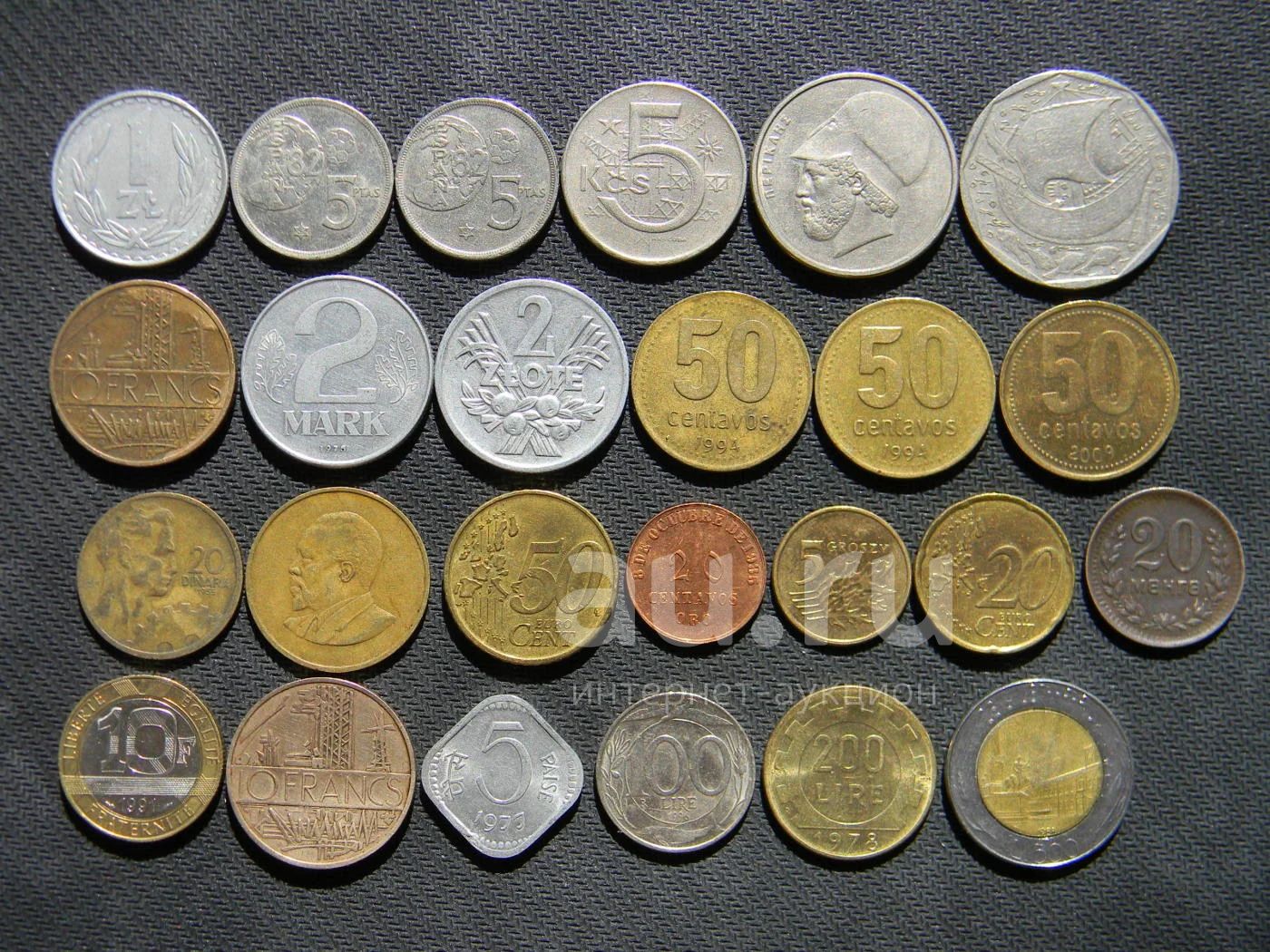 Иностранные монеты: Аргентина, Евроценты, Италия, Испания, Монголия, Перу, Польша, Франция.