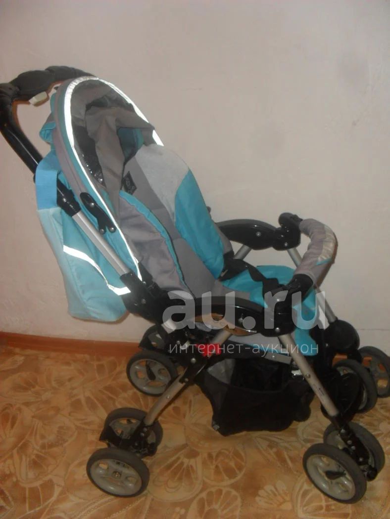коляска с 7мес,три положения спинки-откидывается до 170градусов, колеса все поворотные,задние с тормозами,крыша имеет 2 смотровых окошка и накрывает до бампера,чехол на ножки,дождевик,сумка для мамы. ширина сиденья 30см.