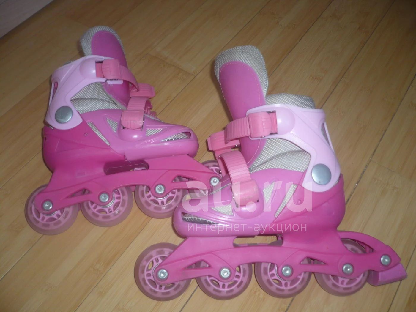 РОЛИКИ ДЕВОЧКЕ РОЗОВОГО ЦВЕТА, НА ОДНОМ КРЕПЛЕНИИ ТРЕЩИНКА.