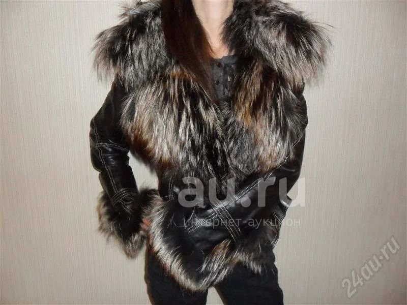 Демисезонная женская кожаная куртка с мехом лисы, размер 46-48, Турция