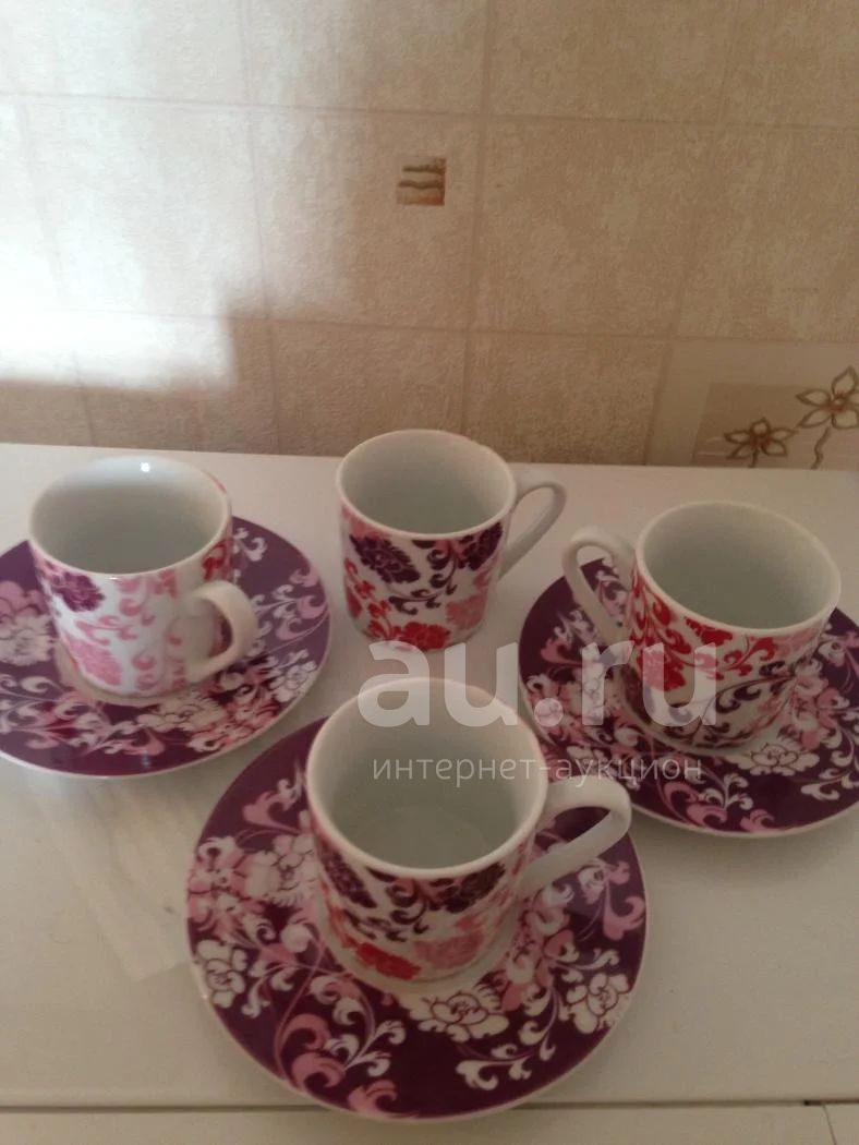 4 чашки и 3 блюдца (одно видимо потерялось или разбилось во время переезда)