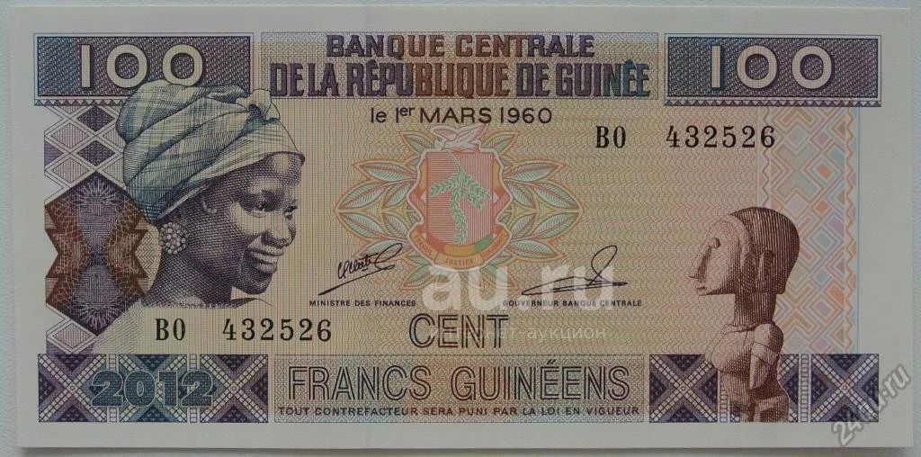 Гвинея 100 франков 2012, в обороте не была