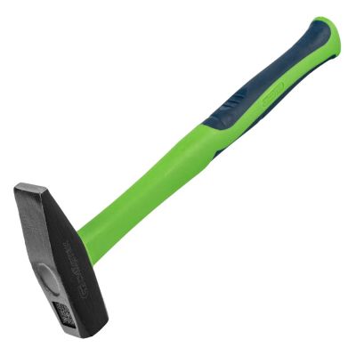 Головка кувалды кованая, покрыта черным лаком, изготовлена из стали 50. Бойку придана селективная закалка, обеспечивающая особую твердость и прочность (52 HRc). Боек слегка выпуклый и отшлифован с обеих сторон. Фибергласовая рукоятка амортизирует отдачу при ударе. Резиновое покрытие препятствует скольжению в руке и обеспечивает удобный и надежный захват.