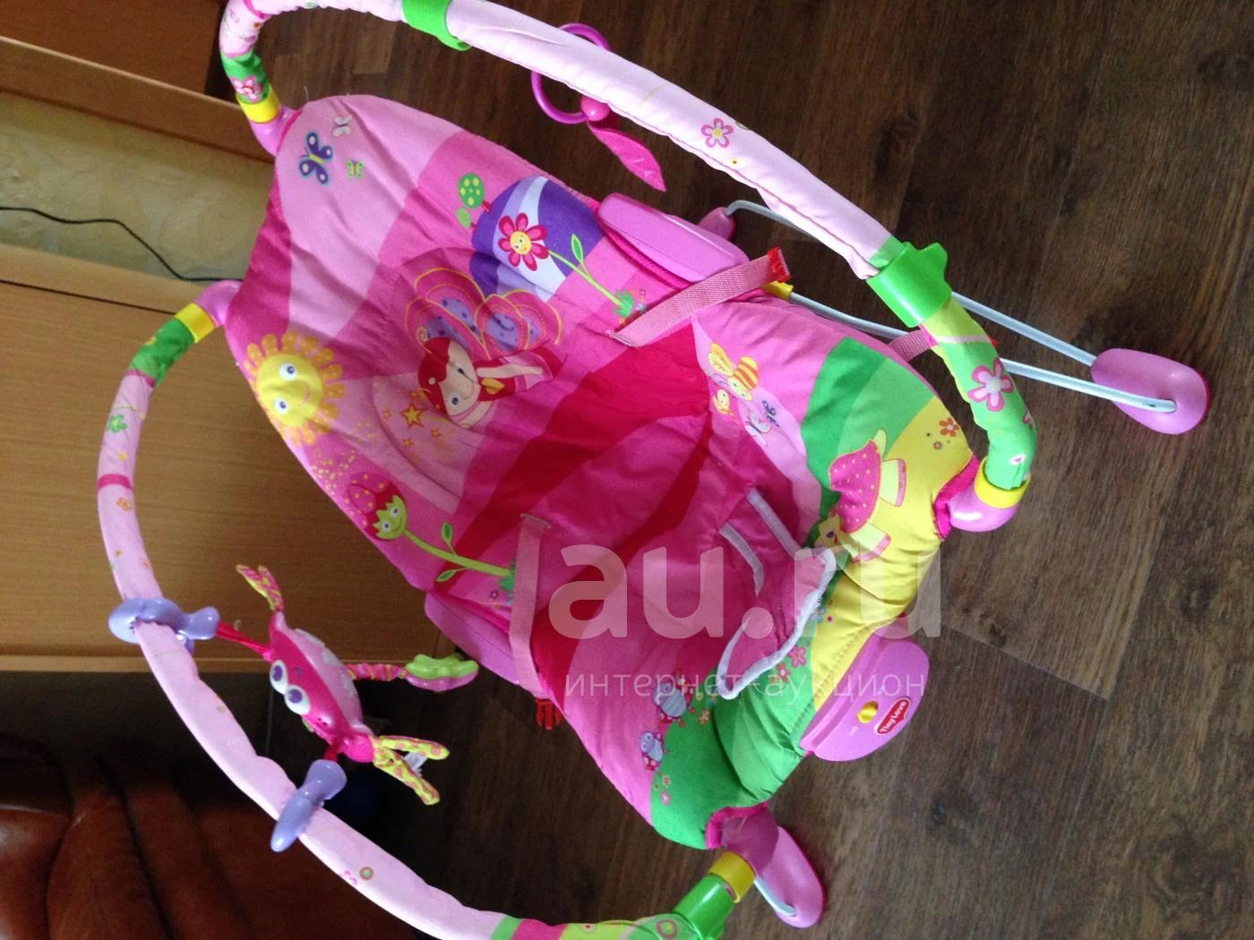 Возраст, на который рассчитано: от 0 до 1 года. Максимальный вес: 9 кг. Переносное кресло со съемными дугами. На дуги крепятся игрушки. В комплект входят: крабик с различными эффектами (звуковыми, световыми) и комплект прорезывателей.