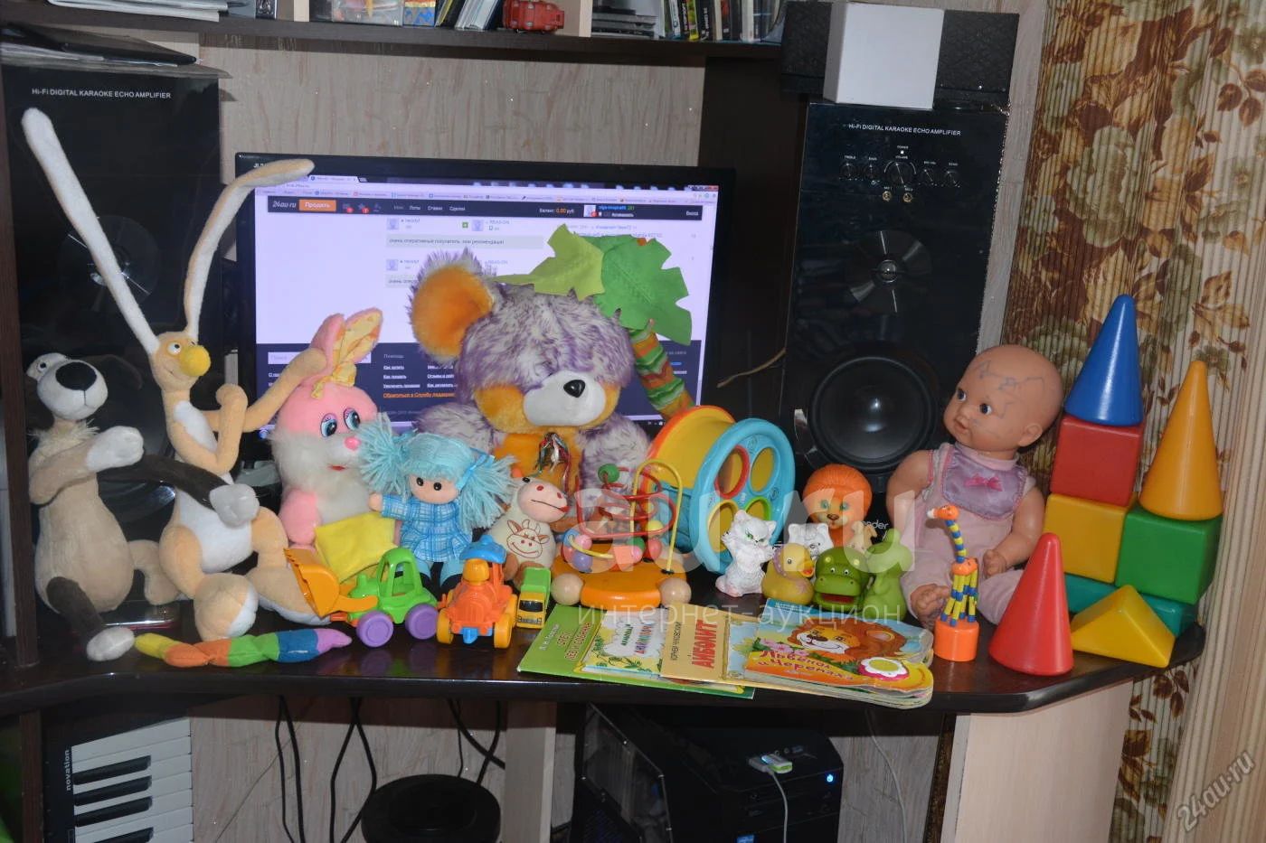 какие-то игрушки после одного ребенка, есть которые дарили и мы даже не играли, есть купленные здесь же