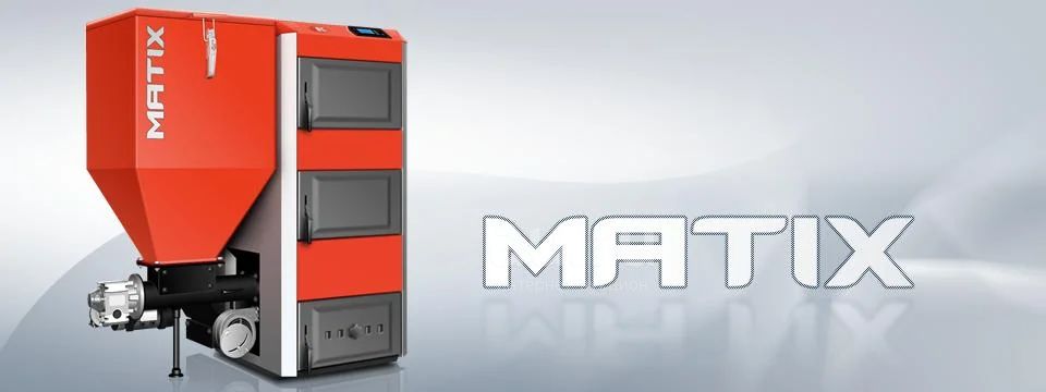 MATIX это котел с многосуточной загрузкой, с бункером и автоматической подачей топлива. Уголь горошек с фракцией от 5 до 25мм, сжигается в ретортной горелке при участии вентилятора поддува. Высокая температура в чугунной горелке позволяет достичь бездымного сгорания, низкой эмиссии и высокой тепловой эффективности (КПД) до 87-89%. Регулятор контролирует температуру воды в котле и управляет работой подачи топлива, вентилятора, насосов, а также может сотрудничать с комнатным термостатом. Значительным преимуществом котла является дополнительное оснащение чугунной колосниковой решеткой. Это дает возможность работать как в аварийных ситуациях, так и периодически сжигать древесину и другое топливо. MATIX может работать беспрерывно, без необходимости гашения котла в полном отопительном сезоне. Автоматический режим позволяет приготовить горячую хозяйственную воду даже в летний период. У котла есть экологический сертификат ICHPW, подтвержденный исследованиями ICHPW. Одноразовая загрузка топлива обеспечивает несколько дневную работу котла без обслуживания. Котлы MATIX дополнительно могут быть оснащены системой trio, которая повышает эффективность сжигания эко горошка, угольной мелочи и биомассы в виде пеллета. Котлы запроектированы в номинальной мощности от 17 до 60 кВт