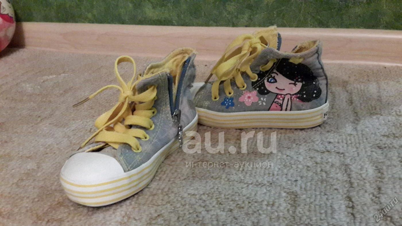 Кеда текстиль, джинс. Почти не носили. Порван задник, на правом ботинке. обладая фантазией и умелыми руками, думаю, не сложно будет поставить веселую заплатку. у меня руки не очень умелые...