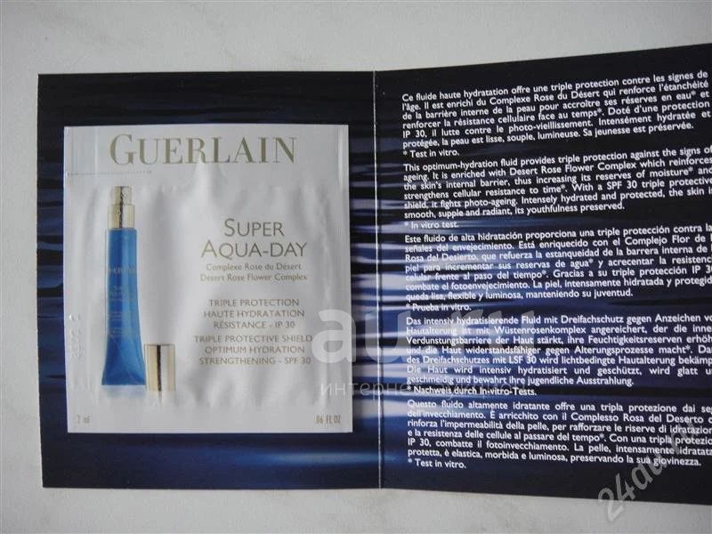 GUERLAIN Интенсивное увлажняющее дневное средство тройного действия Super Aqua-Day SPF 30 пробник.