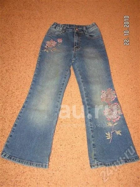 Джинсы с вышивкой, размер 122/30. Состояние хорошее.
