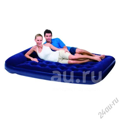 Надувной матрас (2-спальный) из прочного винила. Верхняя часть матраса имеет флокированное покрытие, напоминающее велюр, которое не позволяет постельному белью соскальзывать, интегрированная подушка. Трубчатые перегородки придают особую жесткость и устойчивость к деформации.. На корпусе кровати имеется резьбовой клапан для быстрого надувания/сдувания и встроенный ножной насос. Такой матрас можно использовать как в помещении, так и на открытом воздухе. В комплект входит ремонтная заплатка.