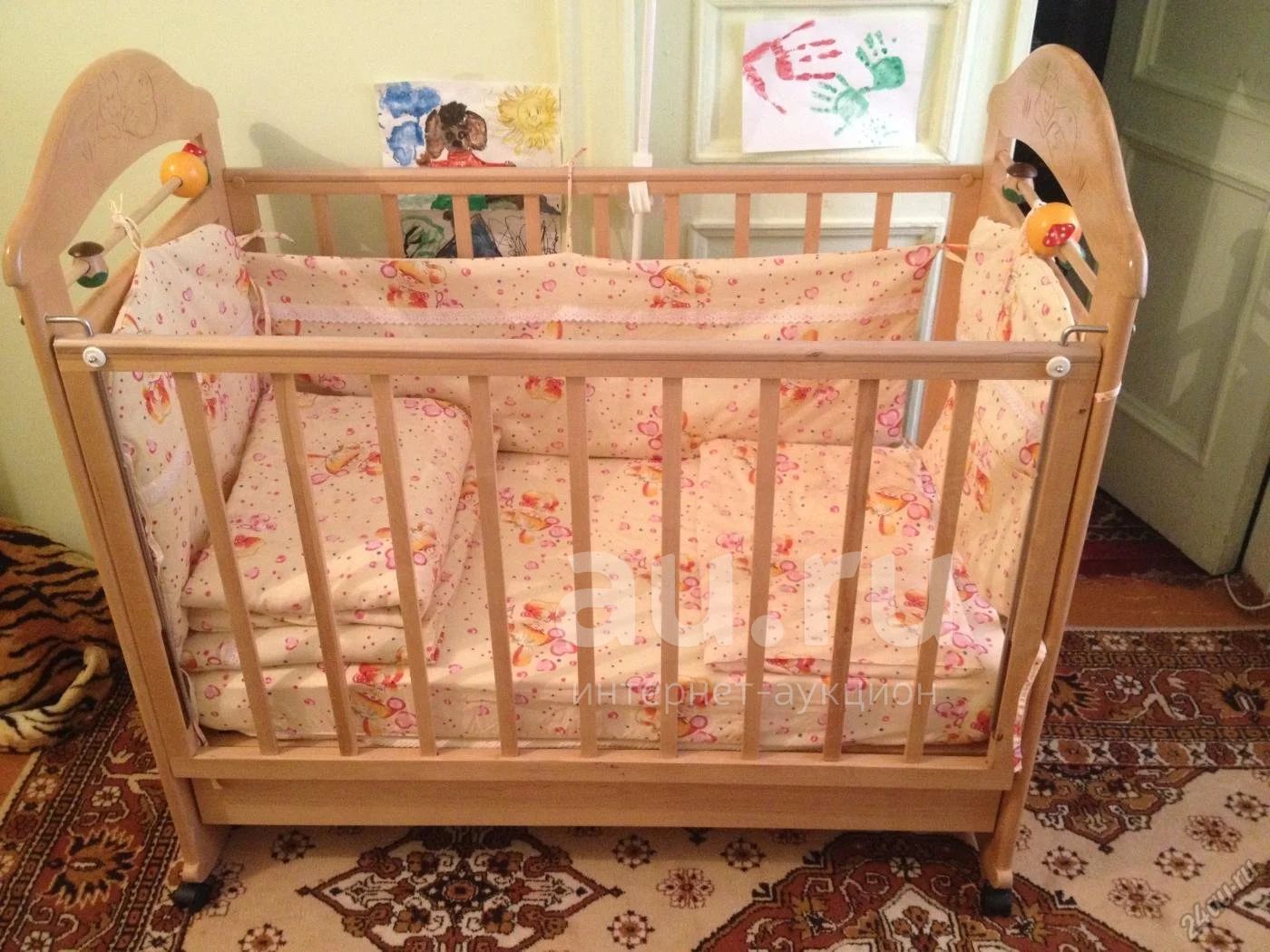 Продам детскую кроватку с выдвижным ящиком, опускающейся стенкой, матрасом, с мягкими бортиками и балдахином; и кормильный столик с регулировками по высоте кресла, наклону спинки и регулировкой столешницы, все в хорошем состоянии!