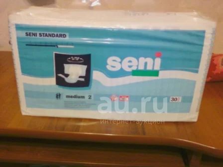 Seni standard medium (размер 2), объем 75--110 см, 6 капель, в упаковке - 30 штук. Цена 500 руб. за упаковку.