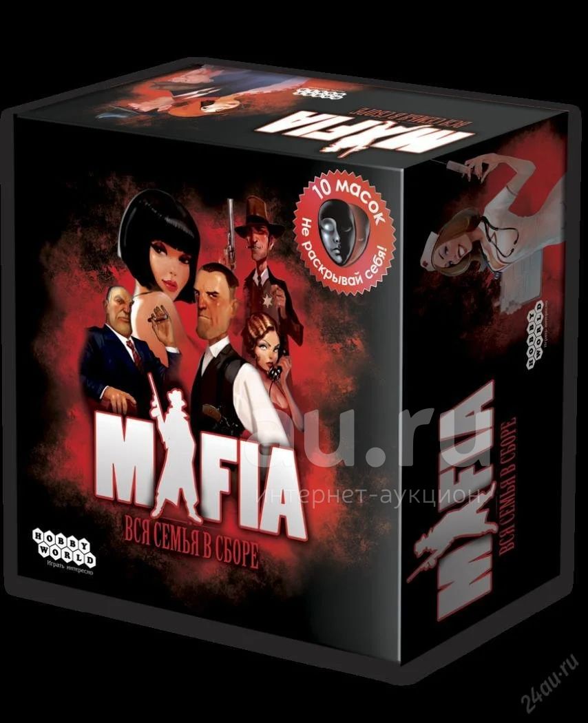 Настольная игра Мафия. Вся семья в сборе - это психологическая командная игра с криминально-детективным сюжетом. Она была придумана в 1986 году студентом факультета психологии МГУ и очень быстро стала популярной во всём мире.