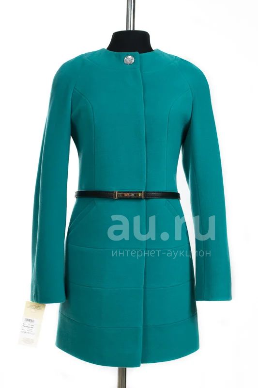 Пальто женское демисезонное. Кашемир, цвет бирюза. Размер 40-42