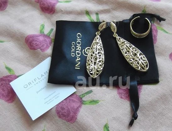 Серьги+кольцо Giordani Gold в красивом подарочном мешочке,кольцо регулируется под любой размер пальца,серьги застегиваются как гвоздики.Смотрятся очень красиво и эффектно. Новое.