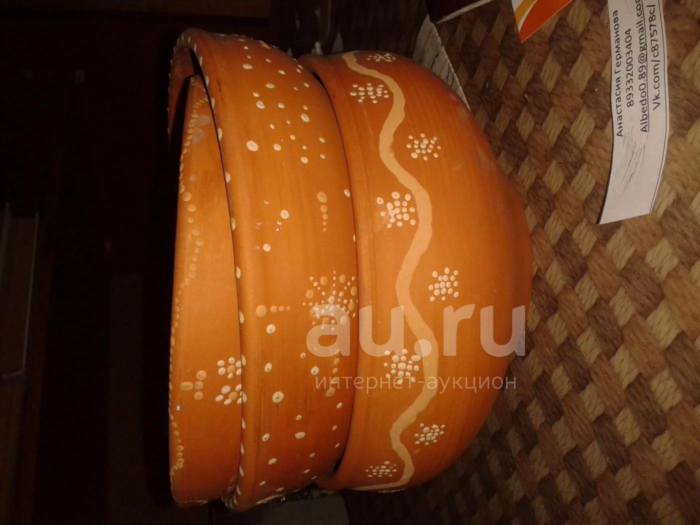 Самодельные керамические глубокие тарелки с точечной росписью снаружи. Пригодны для пищевых продуктов. Цена указана за 1шт. В наличии две: верхняя и нижняя. Среднюю купили