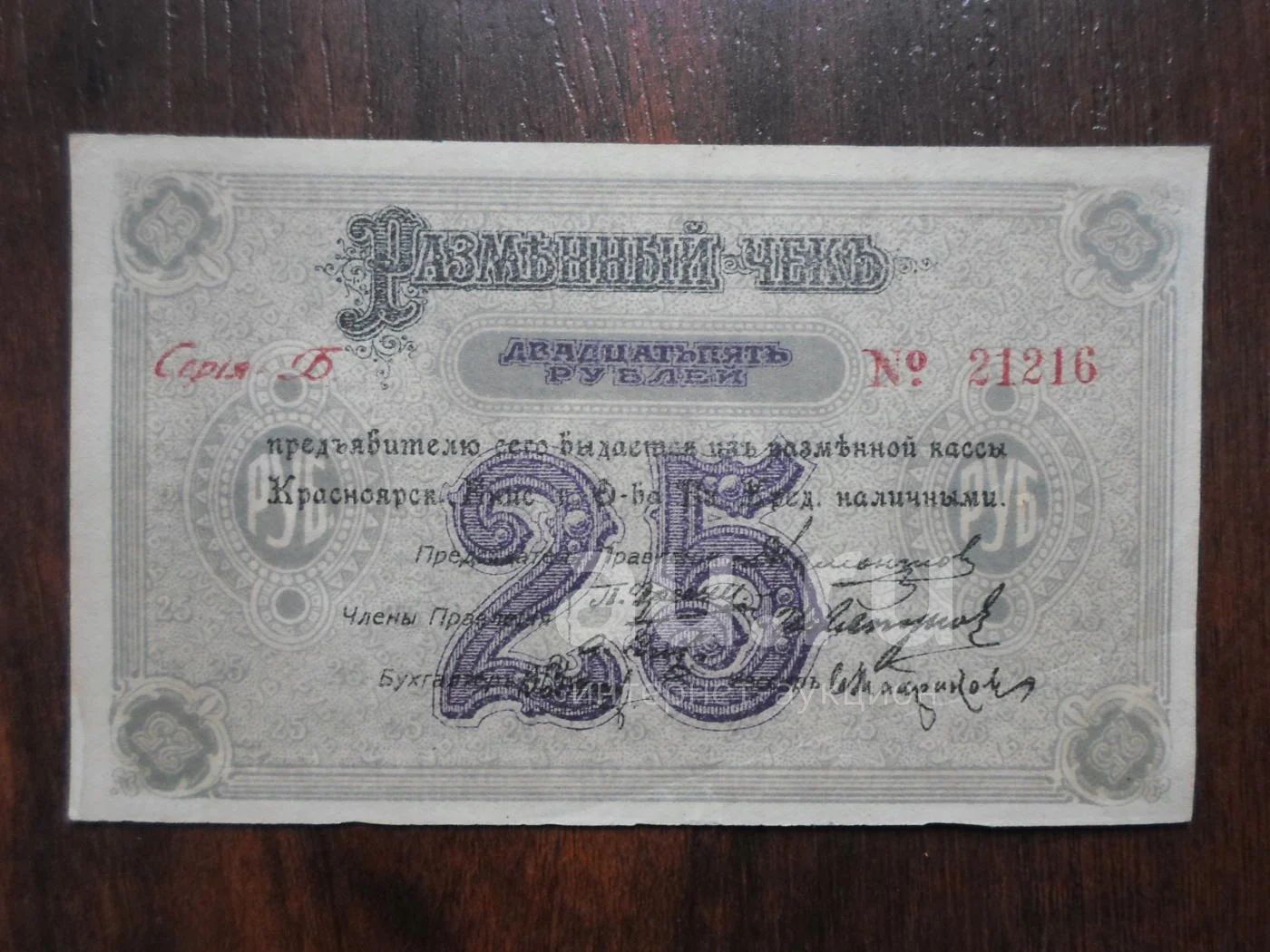 25 рублей. Красноярск 1919 г Пресс!