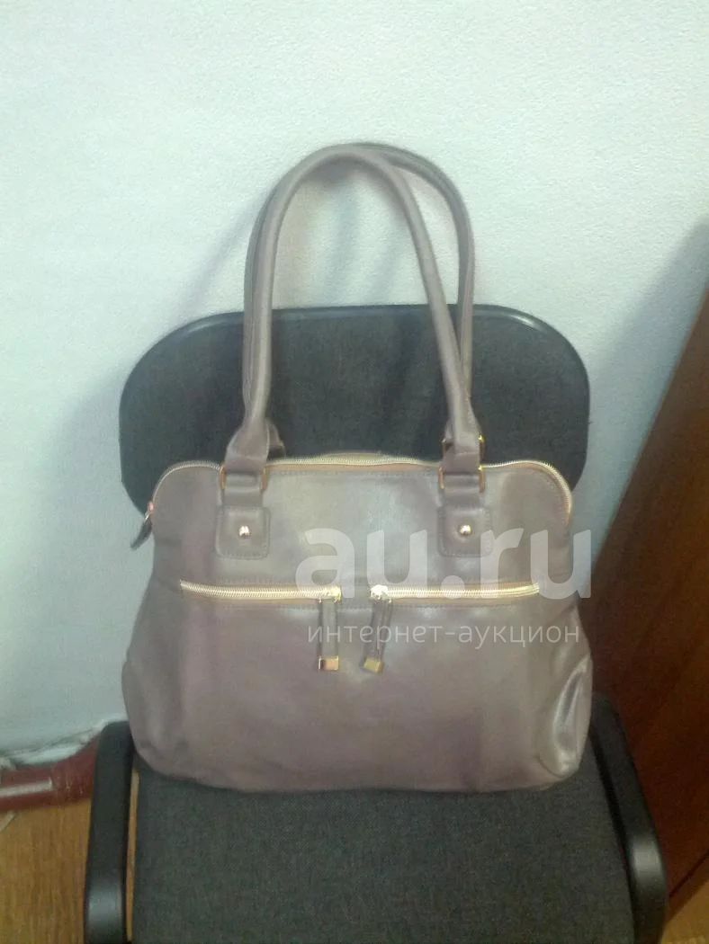 Цвет кофе с молоком. Размер 25*35*13, два наружных кармашка на молнии+2кармашка внутри.