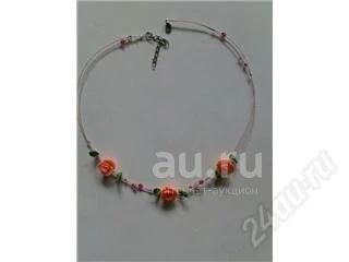 колье с розочками, зелеными листиками и бусинками