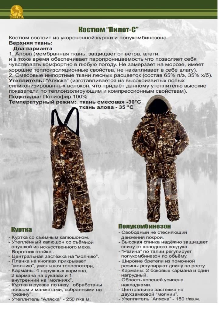 Костюм зим. "Пилот-С" (Алова, мех.опушка) (лес) р.52-54/182-188 (Тайга) 2-1-222.Доставка.