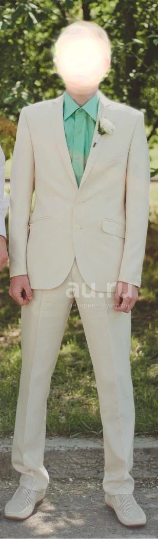 Мужской костюм, 44 размера, на рост 170 - 176, молочного цвета, приятный на ощупь, прилегающий силуэт. Одевался один раз, состояние идеальное. Приобретался за 8800.