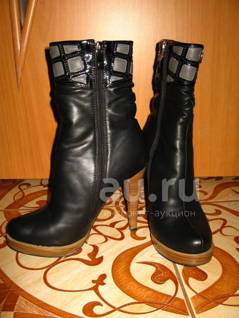 Шикарные ботильоны черного цвета, набойки родные, внутри искусств. мех, размер 36. Длина по стельке 23 см.