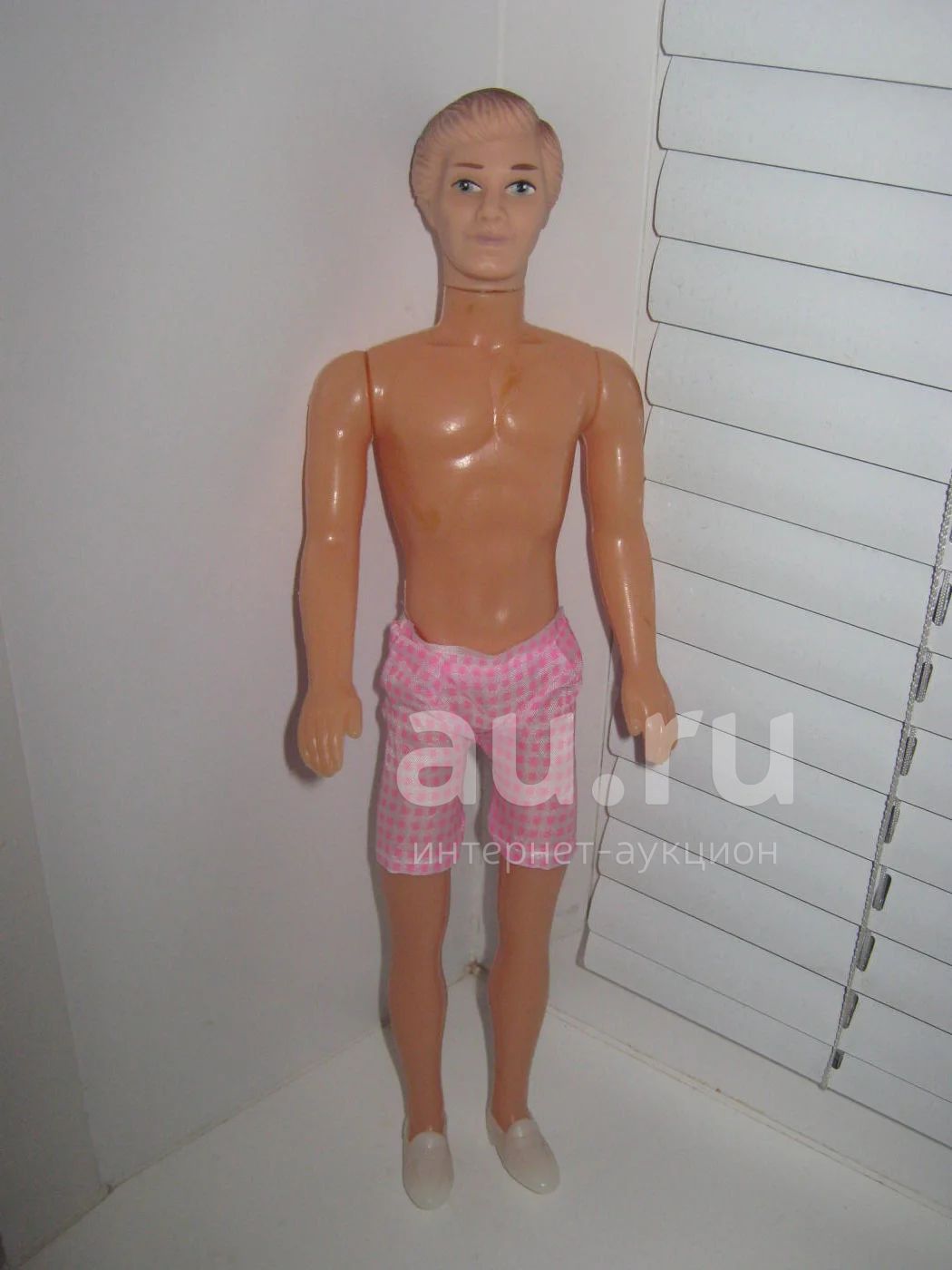Кукла "Кен", произведен примерно в 1994 году. Аксессуары: туфли белые, съемные из пластика. Недостаток: голову нужно приклеить на суперклей так как раньше большинство кукол были таковыми. К сожалению, одежда Кена (брюки и рубашка с воротом) не сохранилась так как кукла использовалась для игры.