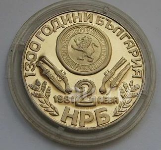 Болгария 2 лева 1981 г."1300 лет Болгарской Государственности". (005)