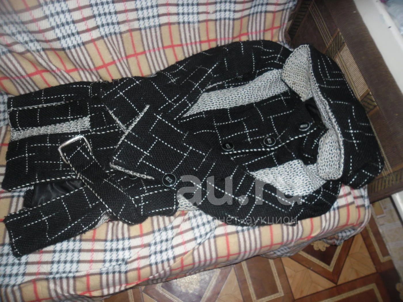 Пальто с капюшоном(не отстегивается),с поясом и карманами.Есть где то затяжки.