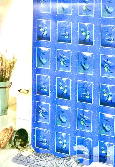 25руб.💙 Штора для ванной ZALEL 180 х 200 см из высококачественной ткани синяя "Аквариум", Турция / синие голубые голубая шторка шторы шторки в ванную ванну душ ванны душа занавес занавесь занавесы занавеси занавеска занавески портьера портьеры полиэстер /