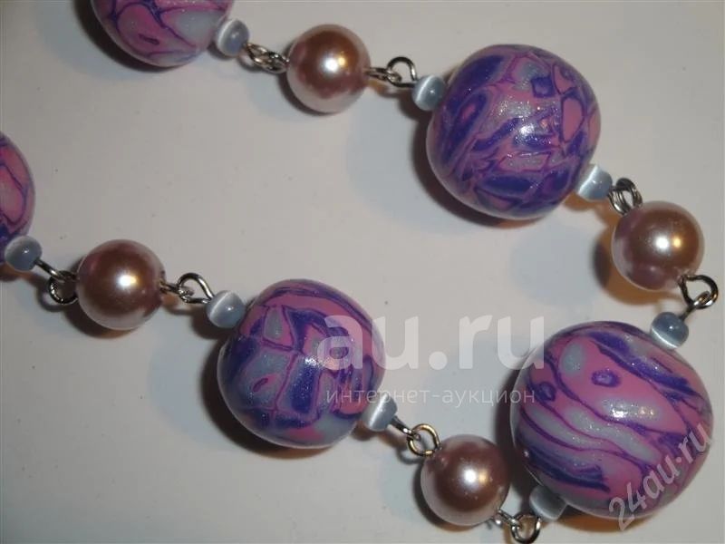 Изделия из полимерной глины,бусы"Сиреневый туман".Авторская работа.