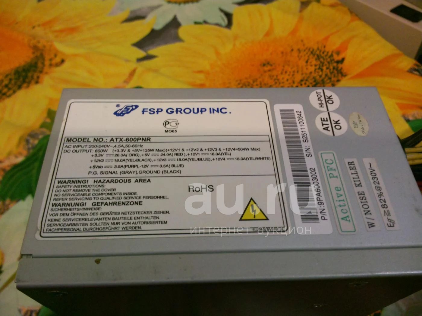 блок питания fsp на 600 ватт. 8ми пиновое питание на видео. неисправен.