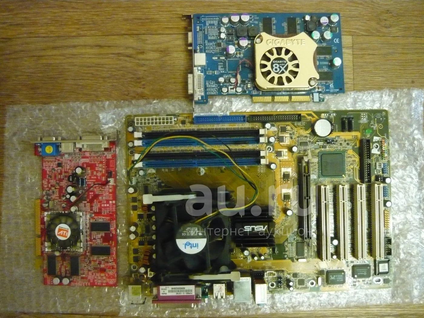 Материнская плата ASUS P4P800-X сокет 478 + процессор Pentium 4 - 3.00 MGh + 2 видеокарты (Radeon R9600PRO 256 MB и Gigabyte FX 5700 128 MB)