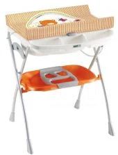 Пеленальный столик, снабженный ванночкой. Имеет практичную раскладывающуюся пеленальную полку  для ванных принадлежностей.