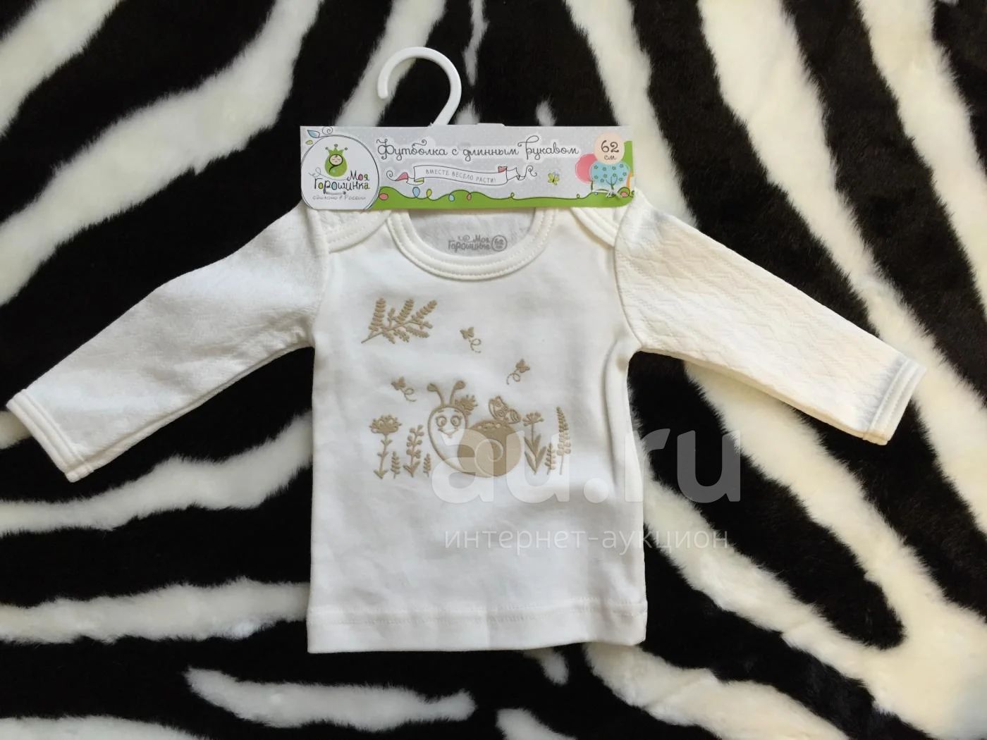 Футболка с длинным рукавом "Моя горошинка", размер 62, цвет Ваниль, 100% хлопок, качество супер, очень приятный к телу. Новое с этикеткой, носим вещи этой же фирмы большего размера и очень довольны качеством. Покупали за 449 рублей. Смотрите другие мои лоты, много новых вещей по низкой цене.