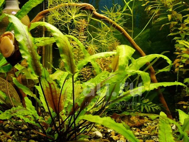 Криптокорина желтая — одно из самых популярных аквариумных растений. Популярно за счет своего окраса листьев, светло-зеленые с бордовой полосой и прожилками по центру листа, а также нетребовательности к условиям содержания в аквариуме. Лучшее расположение в аквариуме криптокорины будет у боковых стенок или на среднем плане.