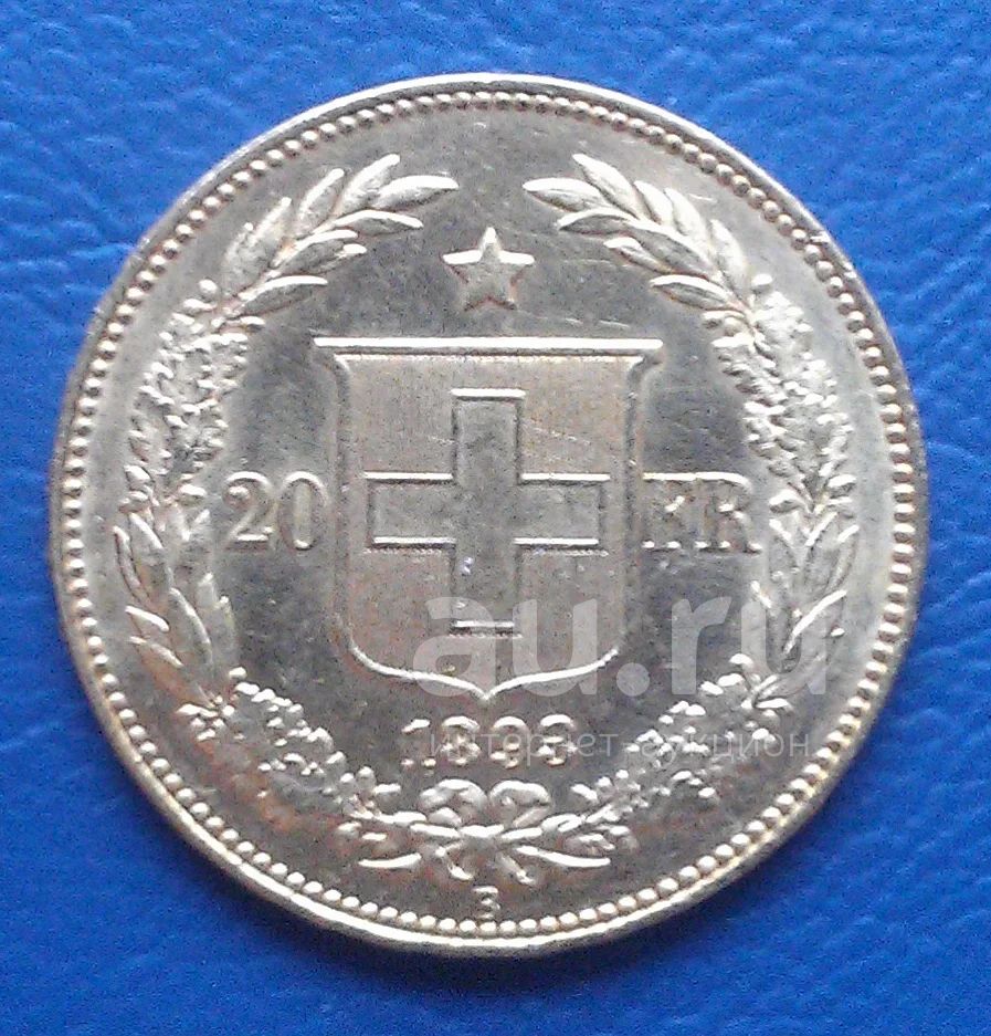 20 франков 1893 года. Швейцария. Золото.