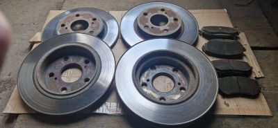200руб.Продам передние и задние тормозные диски Toyota Corolla E160 2014 г. / Оригинал пробег 130 тыс., ровные без биения / Не растачивались / Продажа только комплектом / Передние колодки в подарок