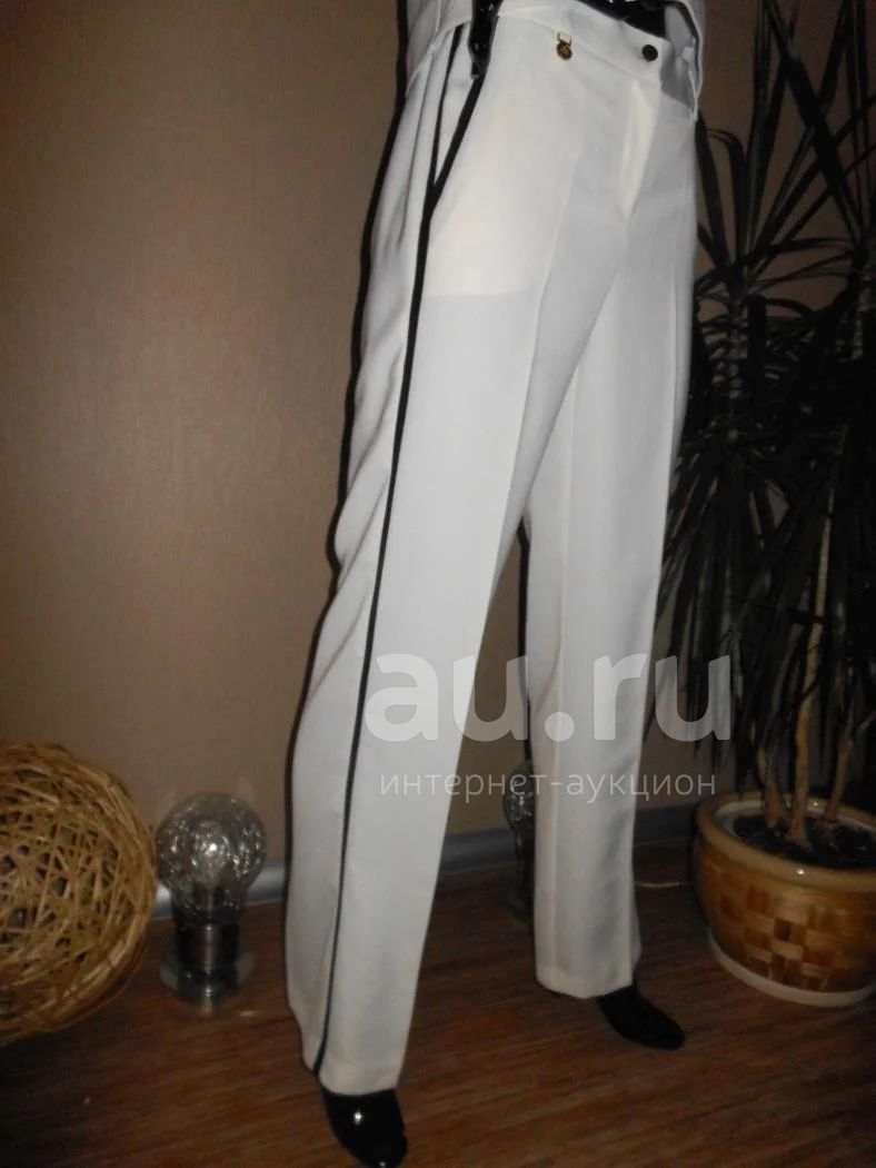 широкие брюки белые со стрелками, с черными узкими лампасами, карманами и фрагментами резинки в поясе, р. 48-50, новые