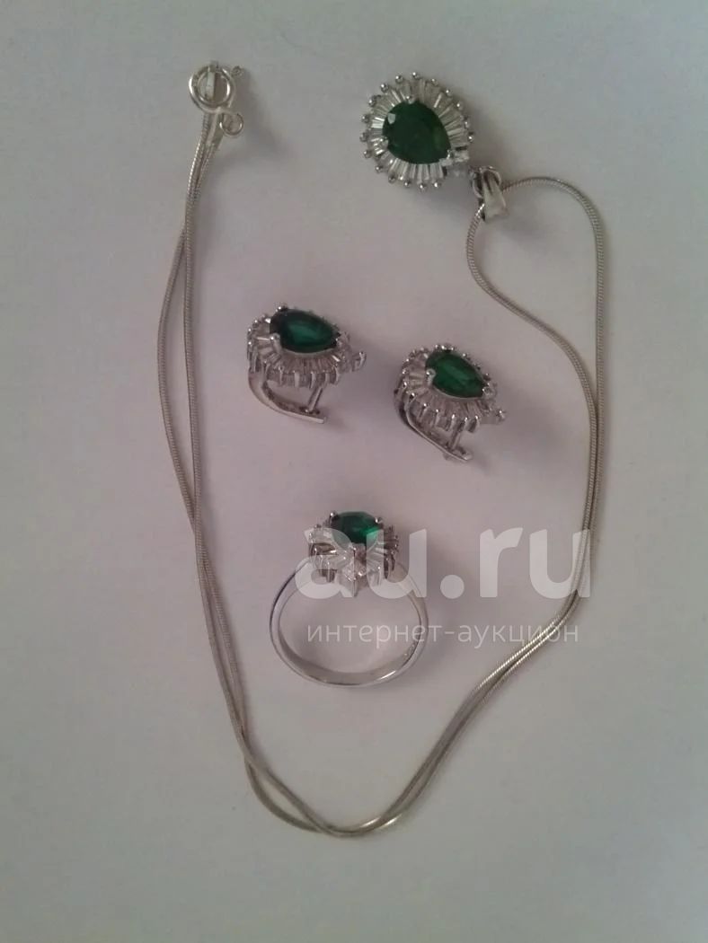 комплект серебро 925 пробы. кольцо размер 17, серьги, цепь с кулоном длина 45 см.