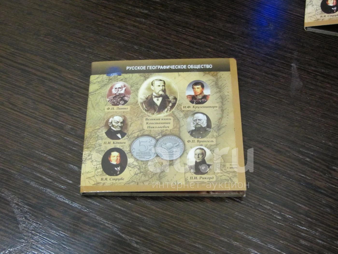 5 рублей 2015 г РГО " 170 лет Русскому Географическому Обществу " в альбоме - планшете коричневом