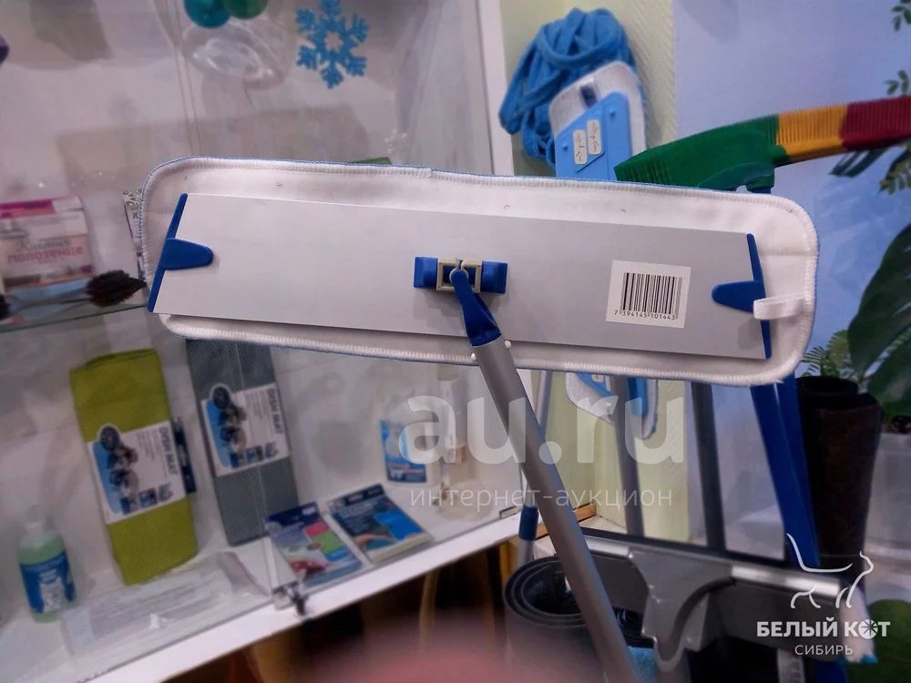 Швабра профессиональная с 1 насадкой (микрофибра влажная) Белый КОТ, новая