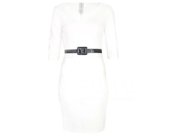 Элегантное и в тоже время повседневное платье белого цвета выполено из плотного материала. Детали: круглый вырез, рукав до локтя, в комплет идет ремень черного цвета.