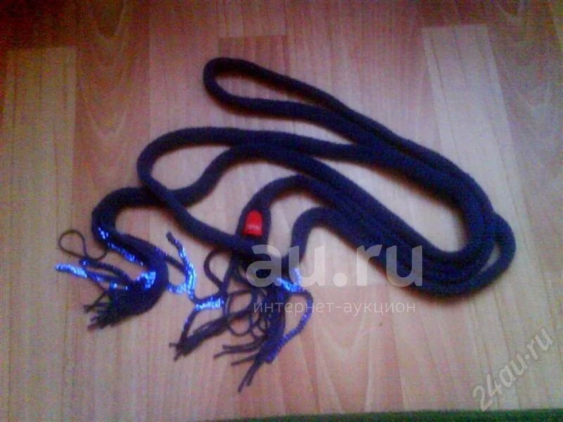 Синий вязаный, в несколько оборотов вокруг шеи. на концах синие пайетки