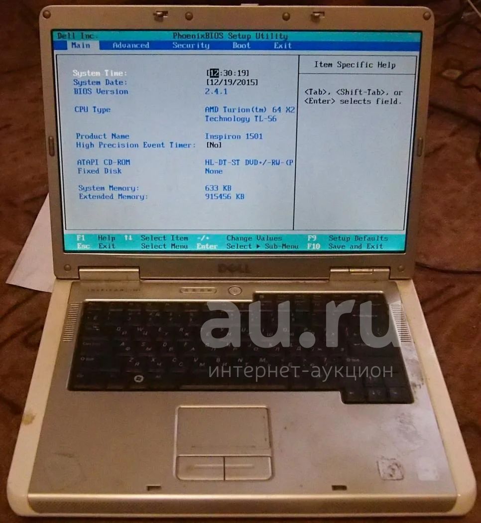 Dell Inspiron 1501 ноутбук в рабочем состоянии без зарядного, жесткого диска