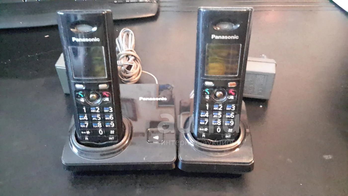 комплект на фото (2 трубки, база, зарядник, 2 блока питания, телефонный провод)