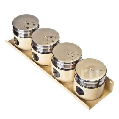 Набор банок 4шт для сыпучих продуктов, металл + стекло на подставке, магнит "Неоклассика" (827-053)