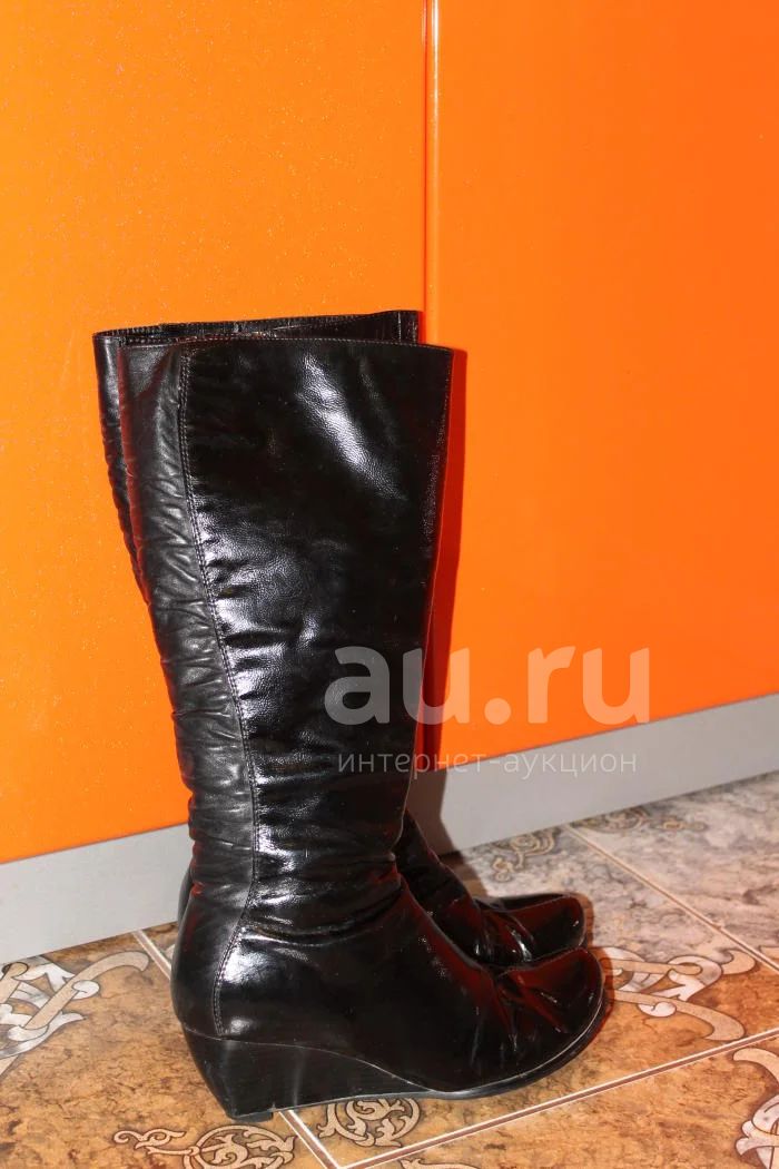 Мех не очень толстый, подойдут и на демисезон, и на теплую зиму, не ободраны, продаю по причине того, что нога располнела - не застегивается замок. Покупала их за 10 000 руб. В хорошем состоянии, натуральный лак, сзади - натуральная кожа. Размер 38, не маломерки, колодка очень удобная.