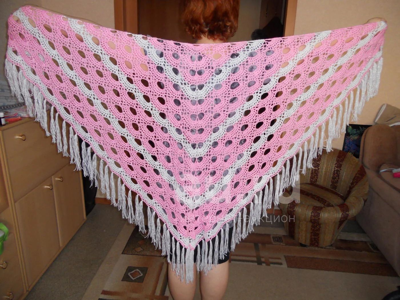 Шаль, ручная работа, акрил с люрексом. Забирать на Ястынской.
