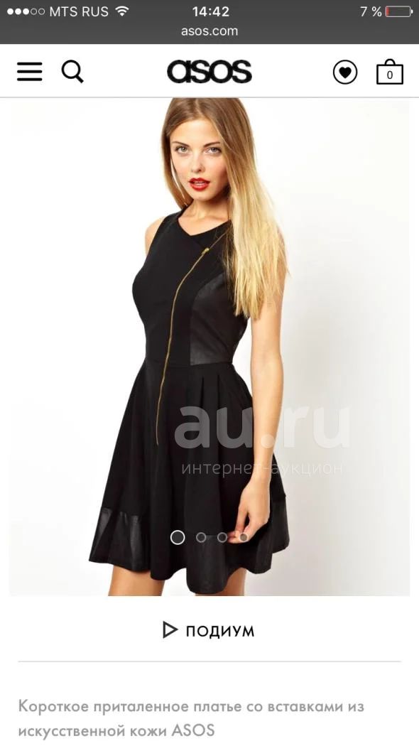 Короткое приталенное платье со вставками из искусственной кожи ASOS, размер 42-44, одевалось 2 раза.